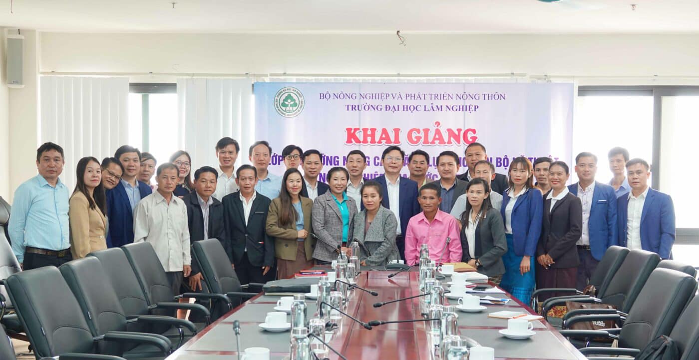 Sáng 29/11/2023, Trường Đại học Lâm nghiệp tổ chức Khai giảng khóa đào tạo ngắn hạn “Bồi dưỡng, nâng cao năng lực cho cán bộ kỹ thuật nông nghiệp nước CHDCND Lào” tại Việt Nam với sự tham gia của lãnh đạo Nhà trường, đại diện các phòng chức năng, khoa viện chuyên môn và 15 học viên nước bạn.