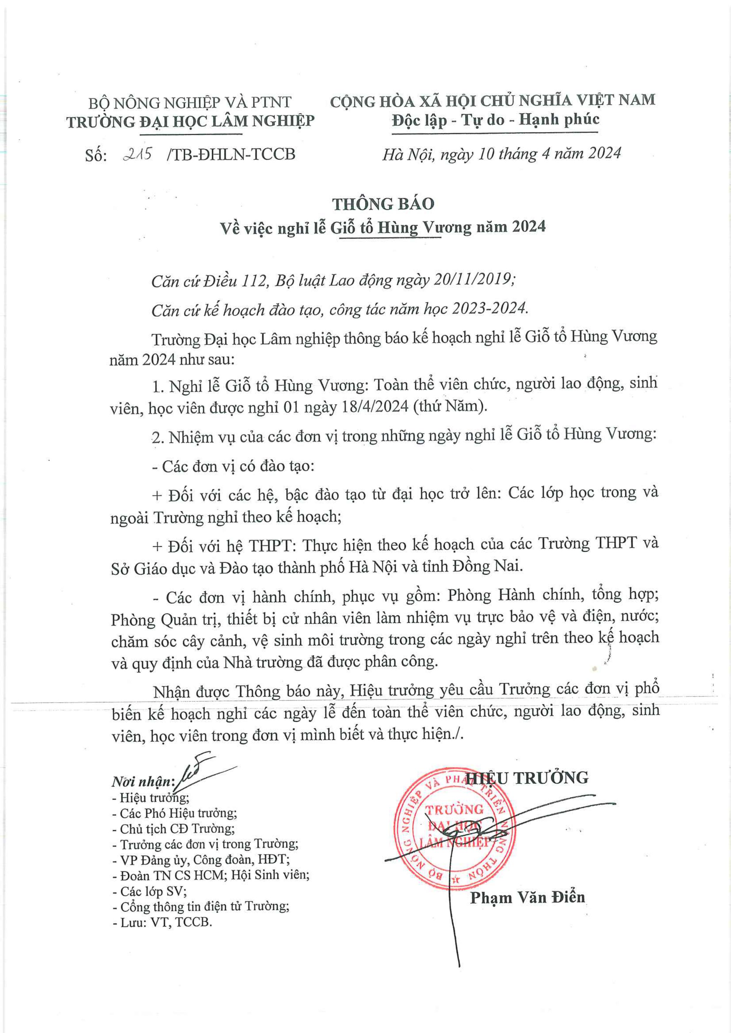 Trường Đại học Lâm nghiệp và Cục Lâm nghiệp – Bộ Nông nghiệp và Phát triển nông thôn phát động “Tết trồng cây đời đời nhớ ơn Bác Hồ” Xuân Giáp Thìn 2024 5 tháng 3, 2024